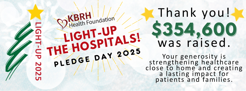 - In person: at the KBRH Health Foundation Office, weekdays between 8am and 4pm, or from 8am to 5:30pm on Pledge Day