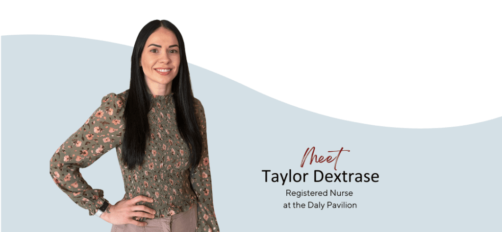 For the past five years, Registered Nurse Taylor Dextrase has been a dedicated member of the Daly Pavilion team, providing compassionate care to individuals facing mental health challenges. Her journey into mental health care is deeply personal—after overcoming childhood trauma, Taylor made it her mission to break down stigmas and support others on their path to healing. Whether in her personal or professional life, she is committed to making a difference. “My goal is always to leave individuals in a better state of mind than I found them, fostering growth, positivity, and resilience in every interaction,” she shares.