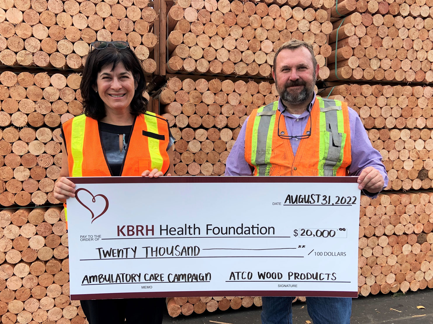 The KBRH Health Foundation received a $20,000 donation from ATCO Wood Products towards the Ambulatory Care Campaign, bringing their total campaign contribution to $55,000. This generous donation will help fund priority medical equipment upgrades in the Ambulatory Care departments at KBRH. Lisa Pasin, Executive Director, has accepted this donation from Scott Weatherford, ATCO CEO (left to right).