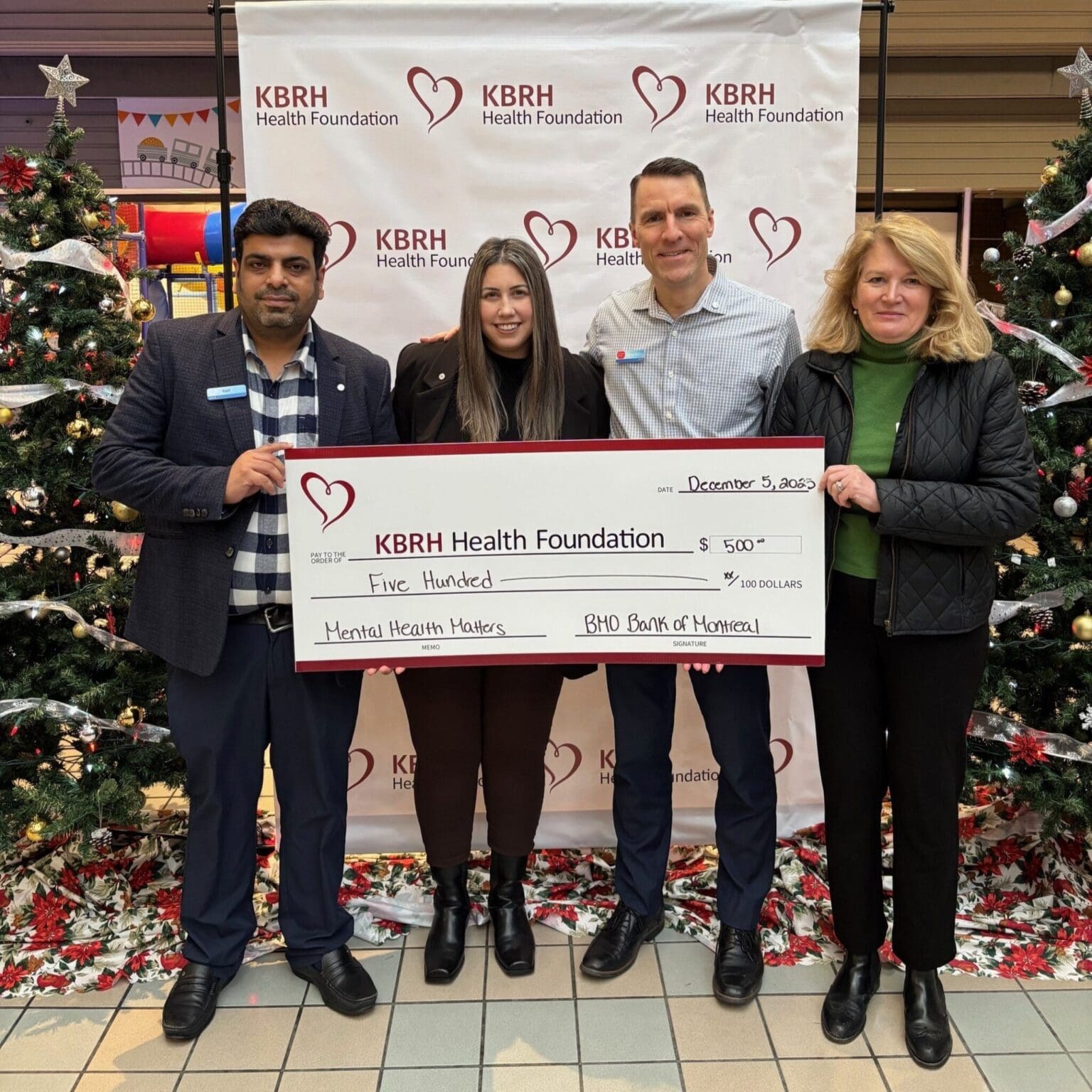 BMO Bank of Montreal showed incredible support during Light-Up the Hospitals! Pledge Day with a generous $500 donation to the Mental Health Matters Campaign. This impactful contribution supports vital improvements such as enhancing mental health spaces, providing specialized furniture, and creating environments that promote comfort, dignity, and recovery for patients. Andrea Bushore, KBRH Health Foundation Board Vice Chair (right), accepted the donation from members of the BMO Bank of Montreal Trail Branch. Thank you, BMO Bank of Montreal and your team, for your meaningful support and for helping strengthen mental health care across the Kootenay Boundary!