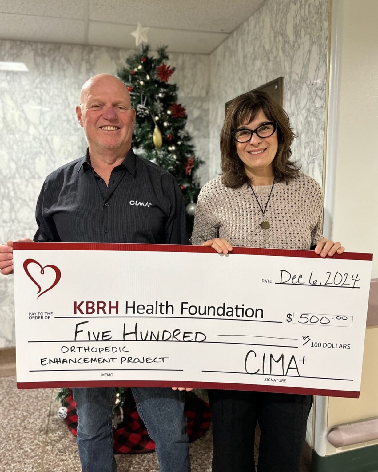 CIMA+ has donated $500 to the Orthopedic Enhancement Project as part of Light-Up The Hospitals! With Jim Pattison’s matching gift, this contribution will have double the impact in advancing orthopedic care at KBRH. Lisa Pasin, Executive Director of the KBRH Health Foundation, accepted this generous contribution from Paul Meyer, CIMA+ Representative (right to left). Your generosity makes a lasting difference in our community. Thank you, CIMA+, for your support!