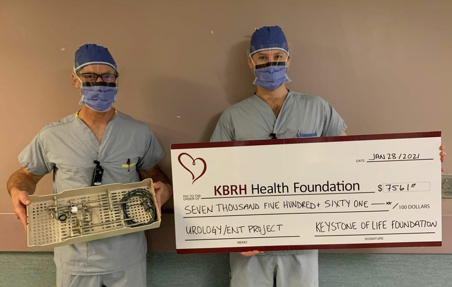 Keystone of Life Foundation donated $7,561 to the KBRH Health Foundation’s Urology & ENT Project. This donation purchased a Resectoscope, which will be used in the operating rooms by the Urologists. Dan & Ren, Registered Nurses in the KBRH Operating Rooms gratefully received this donation.
