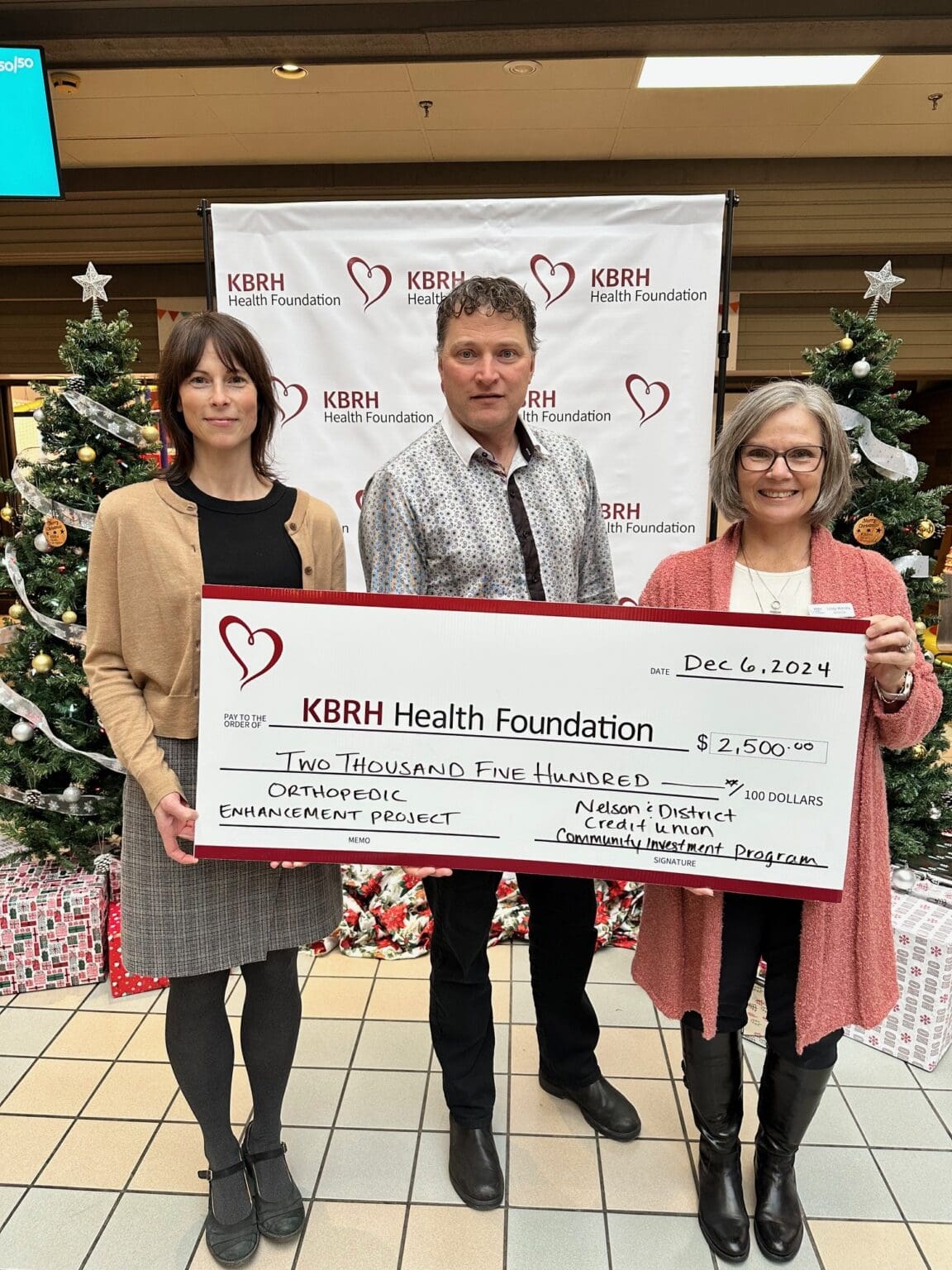 Nelson and District Credit Union has generously donated $2,500 to the Orthopedic Enhancement Project through their Community Investment Program during Light-Up the Hospitals! Pledge Day. Credit Union members in our region provided these funds in support of enhanced healthcare services for the Kootenay region. Tanya Tymchshyn, Financial Services Officer and Brian Poch, Manager of the Nelson & District Credit Union presented the donation to Lindy Welsby, KBRH Health Foundation Board Chair (left to right). This meaningful contribution helps bring better care closer to home.