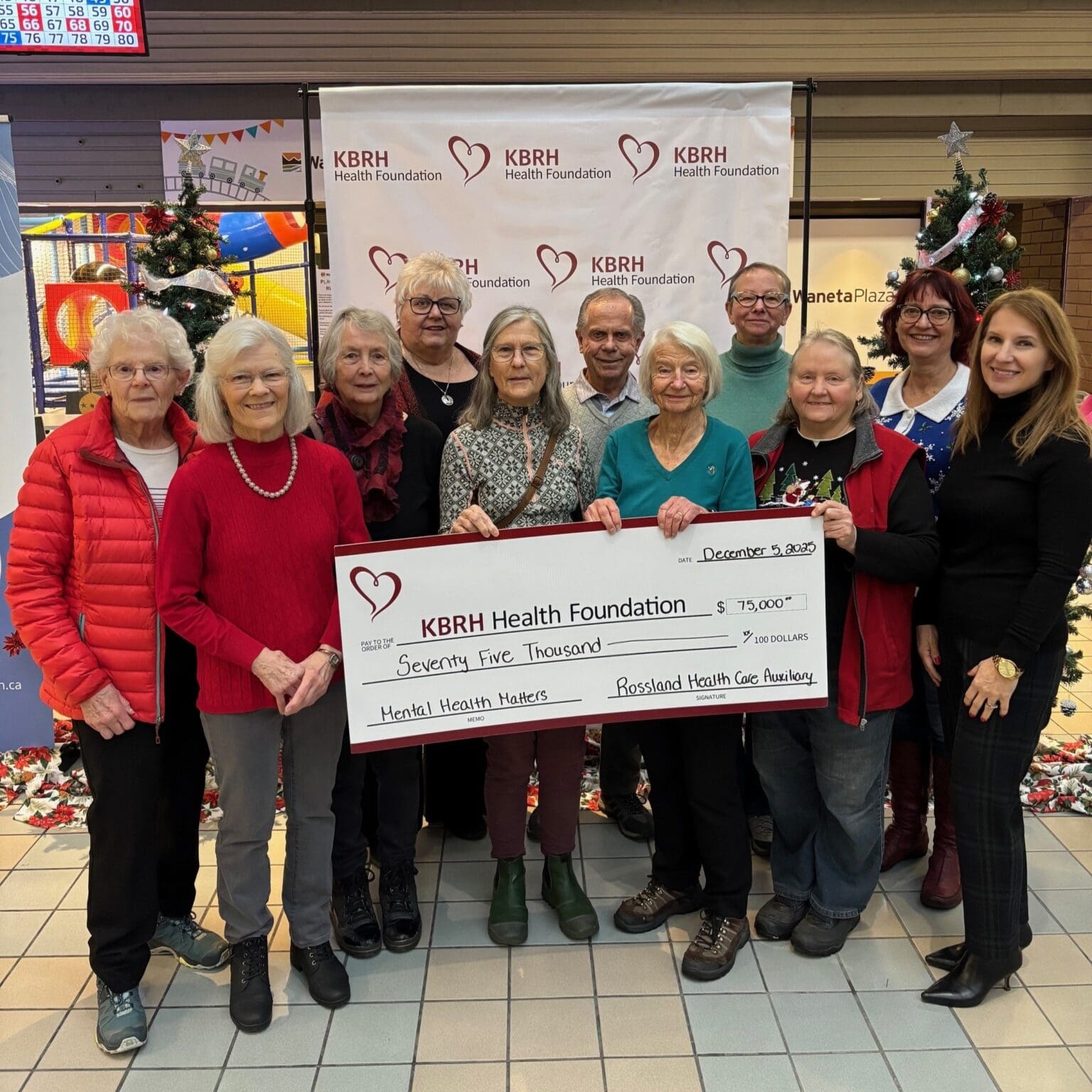 We are incredibly grateful to the Rossland Healthcare Auxiliary for their generous $75,000 donation—one of the largest contributions supporting Light-Up the Hospitals! Pledge Day. Their ongoing commitment to strengthening local healthcare is truly inspiring. This support will help advance critical upgrades, including improvements to KBRH’s Daly Pavilion, enhancements at Harbour House, and the development of a pediatric outdoor space for children and families. Rossland Healthcare Auxiliary members presented this incredible donation to Rebecca Smyth, KBRH Health Foundation Board Director (left to right). This remarkable gift reflects the dedication of their volunteer team and the strong community support behind the Rossland Thrift Store. Thank you for making a lasting impact on care close to home.
