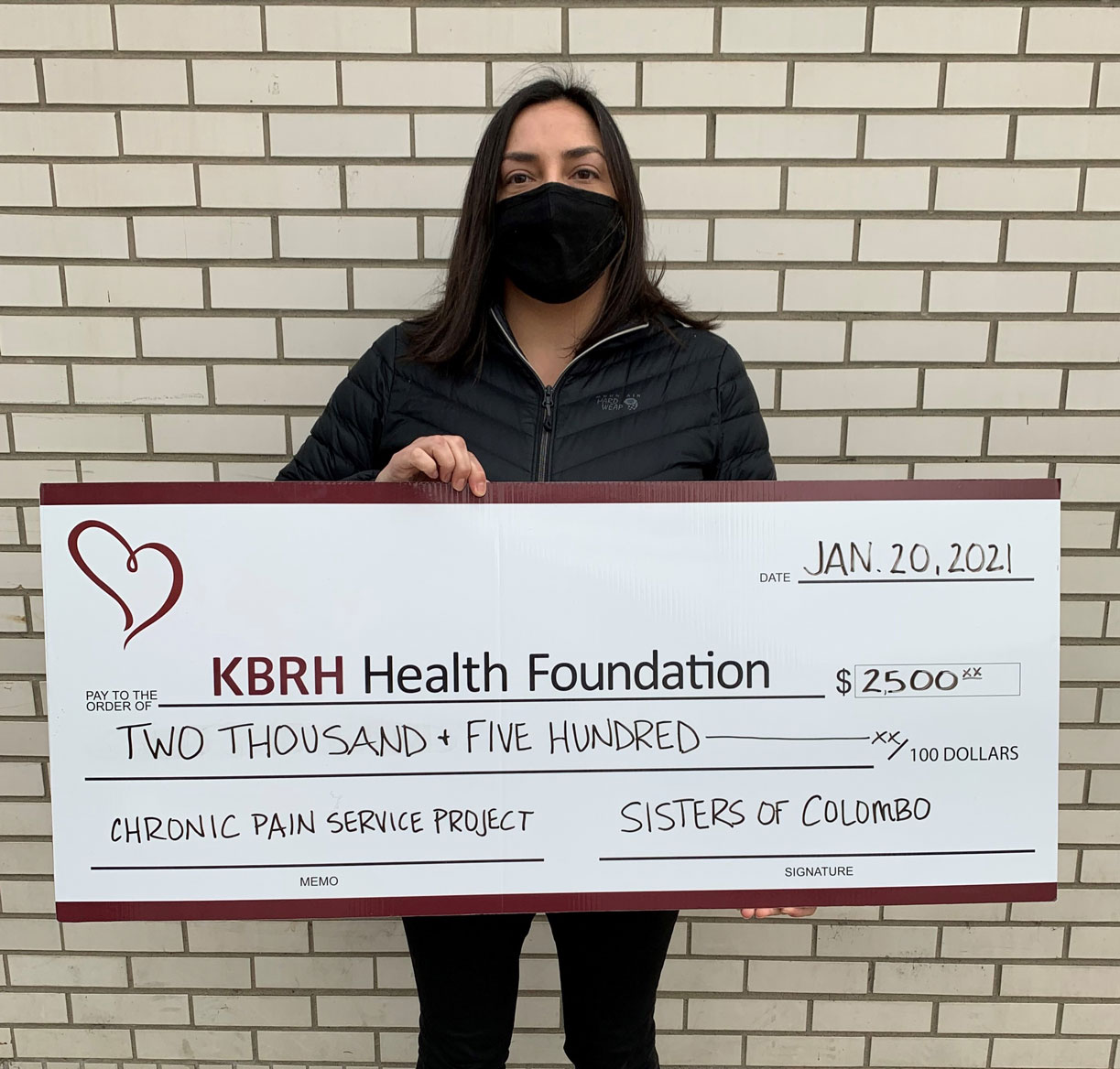 The Sisters of Colombo donated $2,500 to the KBRH Health Foundation’s Chronic Pain Service Project, to purchase state of the art medical equipment. Elizabeth Burke, Presidentessa Sisters of Colombo presented this donation to the KBRH Health Foundation.