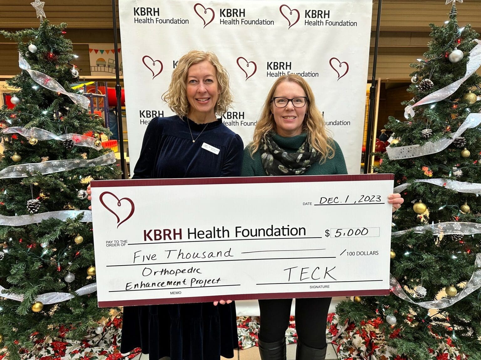 Teck Trail Operations has kicked off our annual Light-Up the Hospitals! Pledge Day with a $5,000 donation to the Orthopedic Enhancement Project and encourages others to contribute—so that together, we can bring better care closer to home. Jayne Garry, Community Relations Leader at Teck presents this starting donating to Dr. Carolyn Stark, KBRH Health Foundation Treasurer (right to left).