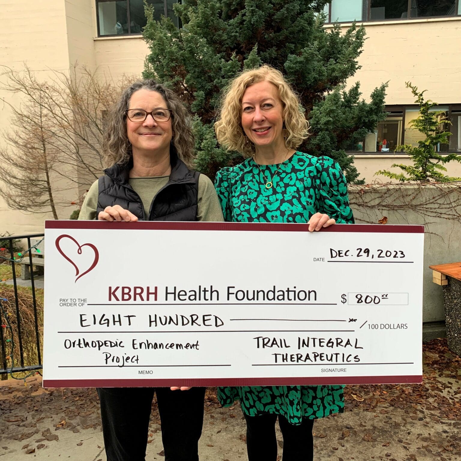 Trail Integral Therapeutics has made a donation of $800 to the Orthopedic Enhancement Project. This contribution will help acquire specialized, up-to-date orthopedic equipment, which ensures advanced orthopedic procedures occur closer to home, right here in the Kootenay Boundary. Dr. Carolyn Stark, KBRH Health Foundation Treasurer gratefully accepts this donation from Lizette Tucker, owner of Trail Integral Therapeutics (right to left). Thank you for making a positive impact on healthcare in our communities.