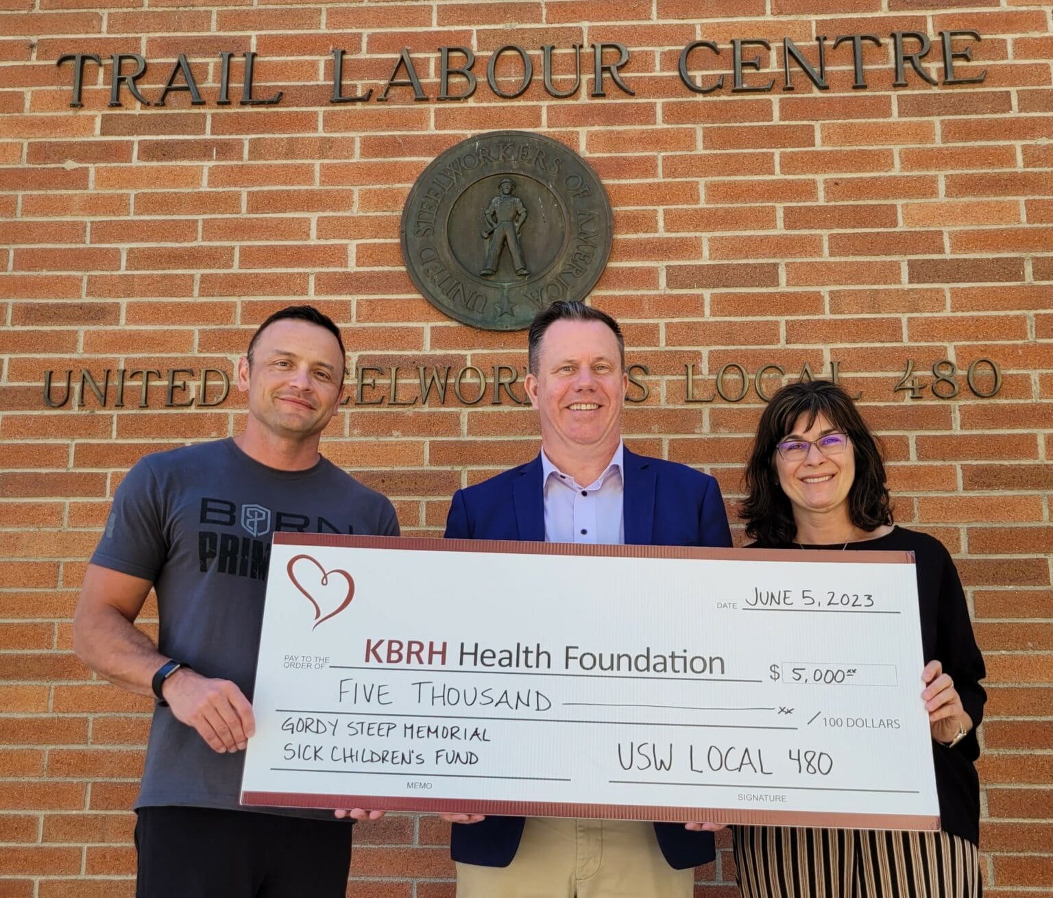 The United Steel Workers Local 480 has donated $5,000 to the KBRH Health Foundation in support of the Gordy Steep Memorial Sick Children’s Fund. Chris Walker, President Local 480 presented this donation to Paul Butler, Foundation Board Member and Lisa Pasin, Foundation Executive Director (left to right). We thank the USW Local 480 and their membership for the continued support of children and families in support of medical care.
