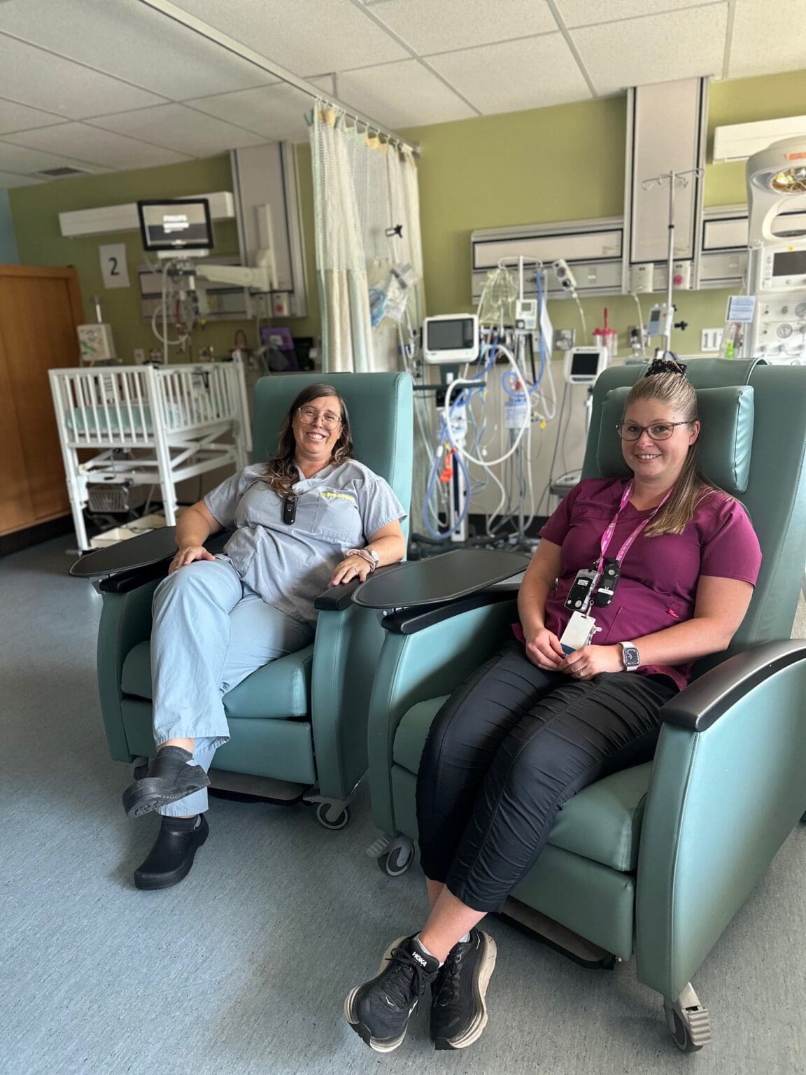 Marnie, RN, and Rylee, Patient Care Coordinator, are excited to show us the two new breastfeeding chairs purchased through your donations for the KBRH Neonatal Intensive Care Unit. These chairs offer a comfortable environment for new mothers to engage in skin-to-skin contact and nursing. Their design ensures easy access to both the infant and mother, allowing healthcare providers to deliver the essential care and support needed during this crucial bonding time. Thank you for helping us create a nurturing environment for families in our community!