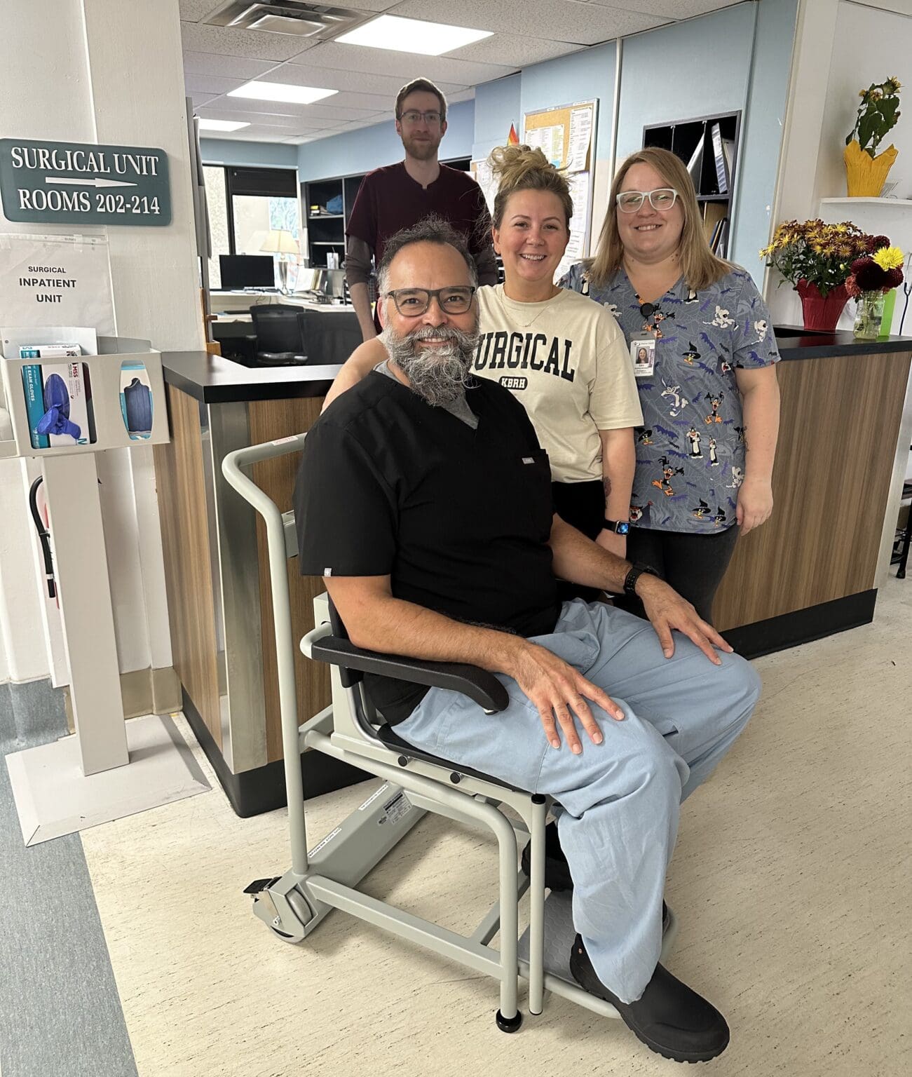 The surgical unit team—Scott, Victor, Tami, and Sara—thanks you for your generous donations, which have allowed us to purchase a digital weigh scale for the surgical floor at KBRH. This essential device ensures accurate weight measurements for patients in wheelchairs, which is critical for tailoring treatments and monitoring patient health. Your support has made this important addition possible, helping KBRH enhance the quality of care provided to our patients. Thank you!