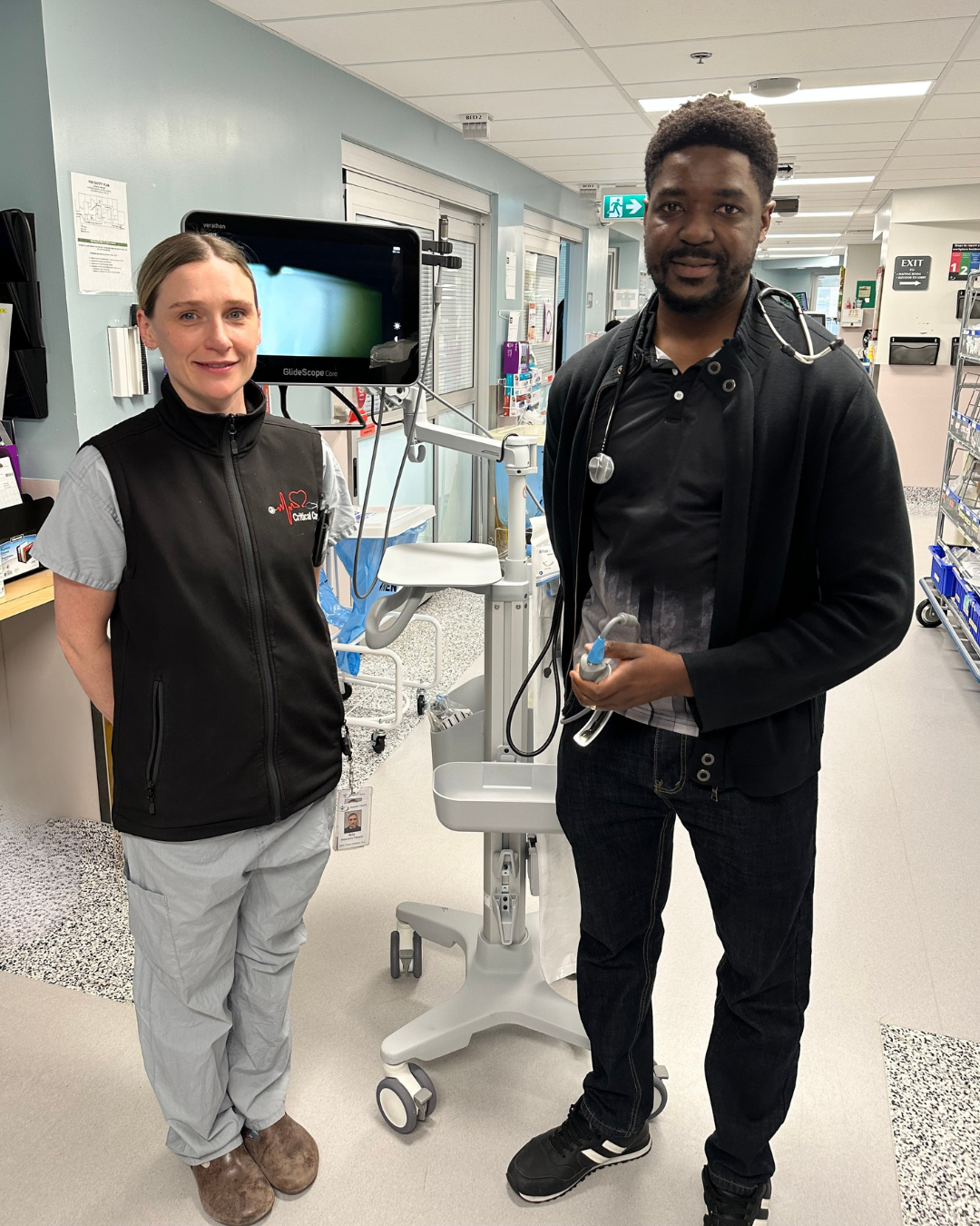 KBRH Health Foundation is grateful to the TB Vets Charitable Foundation for their generous $30,000 donation, which has funded a new Glidescope for the Intensive Care Unit (ICU) at KBRH. The ICU at KBRH treats highly complex medical conditions, with over 1,300 patients requiring care each year. Maintaining essential respiratory equipment is critical, as patients experiencing trauma or severe medical conditions often need intubation as part of their treatment. The Glidescope’s advanced airway management technology offers enhanced visualization and precision, ensuring greater success in urgent and challenging procedures. KBRH Respiratory Therapist Amy Pickerell and ICU Physician Dr. Kundayi Nziramasanga (left to right) are pictured with the new equipment, expressing their appreciation for the life-saving impact it will have on patient care. A heartfelt thank you to TB Vets for their continued dedication to supporting respiratory care and making a lasting difference for our community.