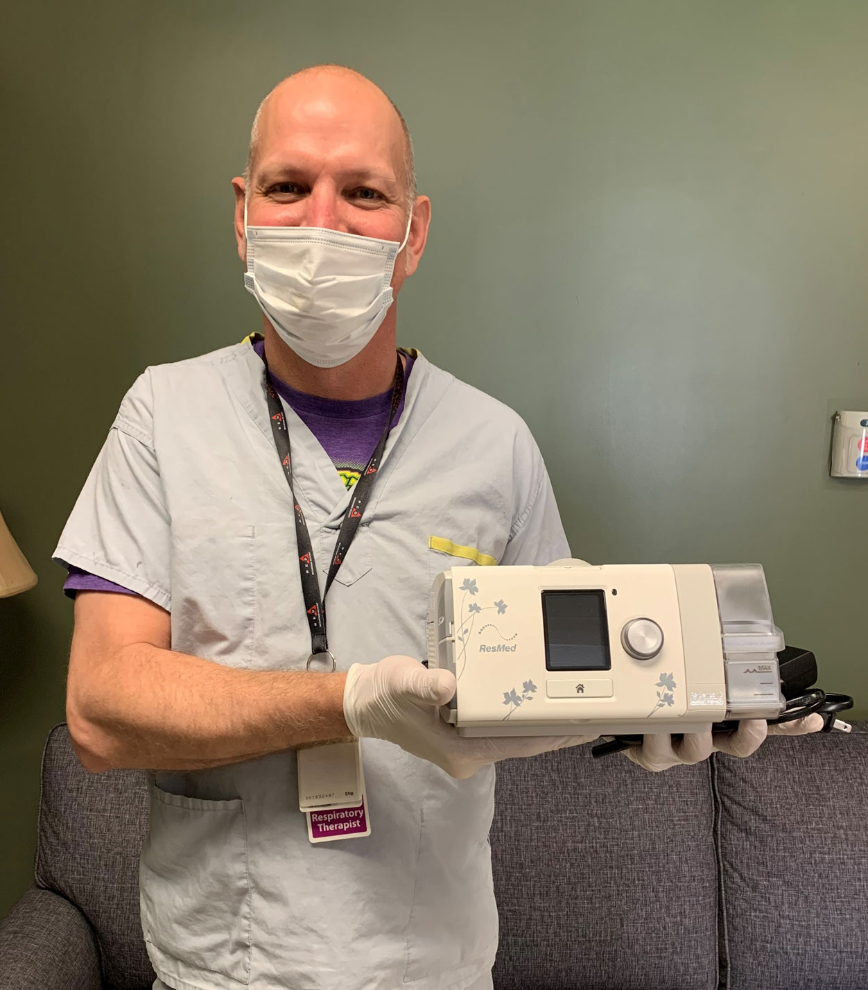 Jon, a respiratory therapist, shows us one of 2 new CPAP devices purchased for KBRH. CPAPs are used on the wards and in the OR recovery room for adult patients with obstructive sleep apnea.