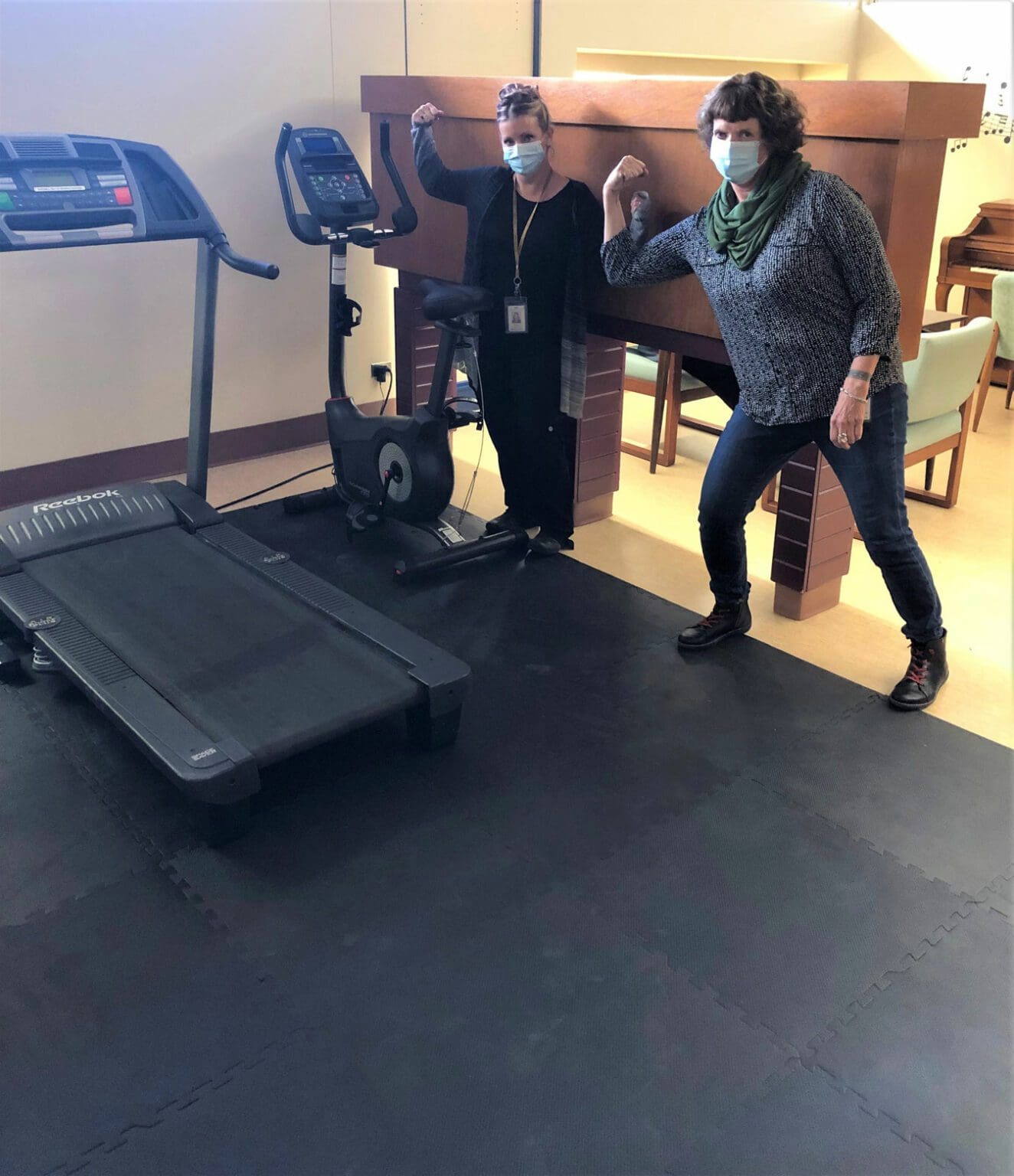 Patients in the adult psychiatric unit at KBRH have access to an exercise area in the Daly Pavilion to support independent, physical activity. Your donations provided an exercise bike and the floor mats, ensuring patients can address their physical health needs and deal with issues like stress, anxiety, and isolation. Karen, Clinical Operations Manager, and Shelina, Nursing Unit Assistant, both work in the Daly Pavilion and wanted to express their gratitude for these patient care items!