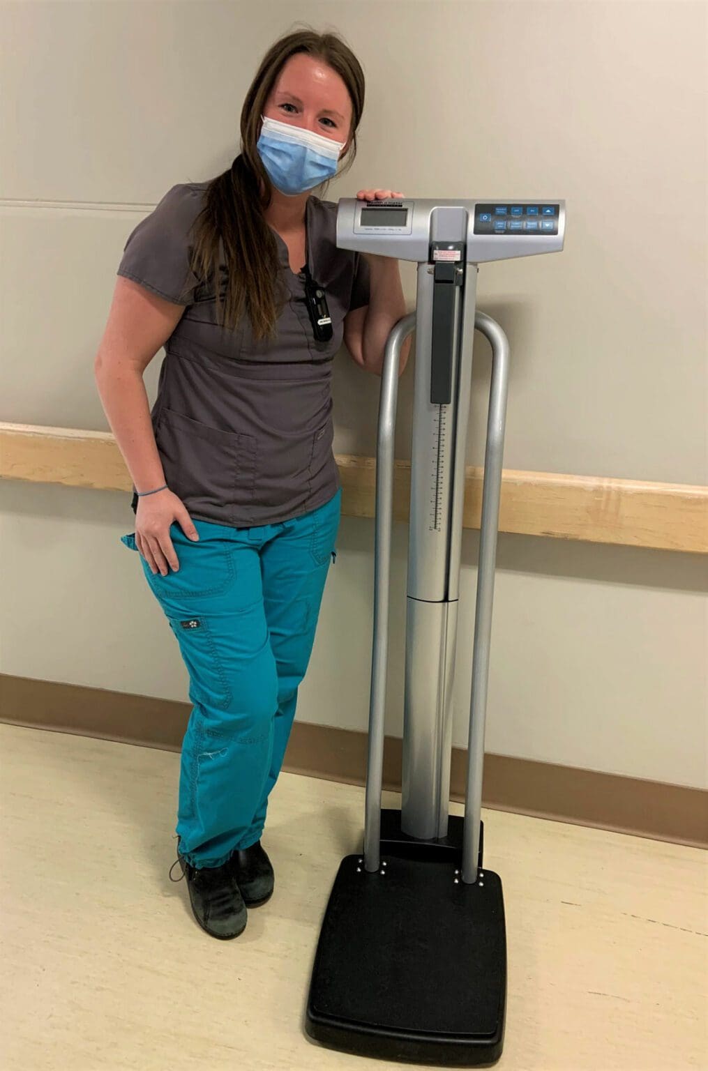 For the medical staff to accurately calculate chemotherapy treatments, reliable measurements of height and weight are important. Brittney, Oncology RN, shows us this new floor scale that allows staff to do just that, while the handlebar wrap provides stability for patients!