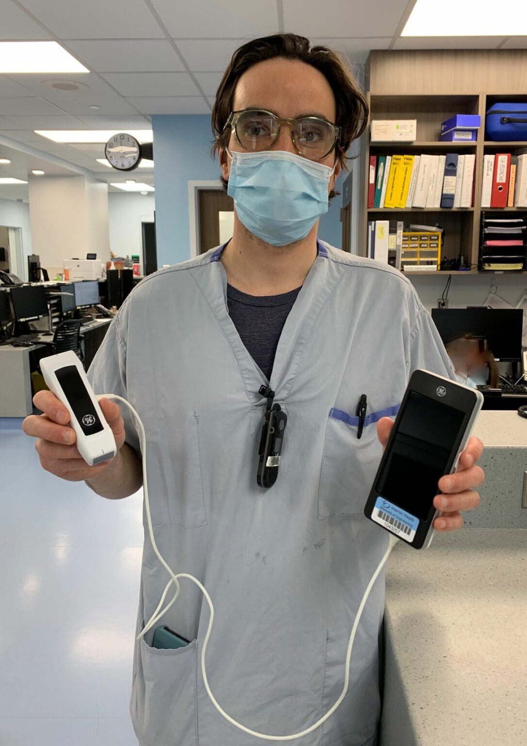 Thanks to your donations, the KBRH Health Foundation purchased a new handheld ultrasound for KBRH’s Emergency Department (ED). Dr Nick Leinweber, ED Physician, is displaying this state-of-the-art equipment. The handheld ultrasound is used to assess blood flow to limbs, identify blood clots and fluid around the heart, and insert arterial lines for critically ill patients.