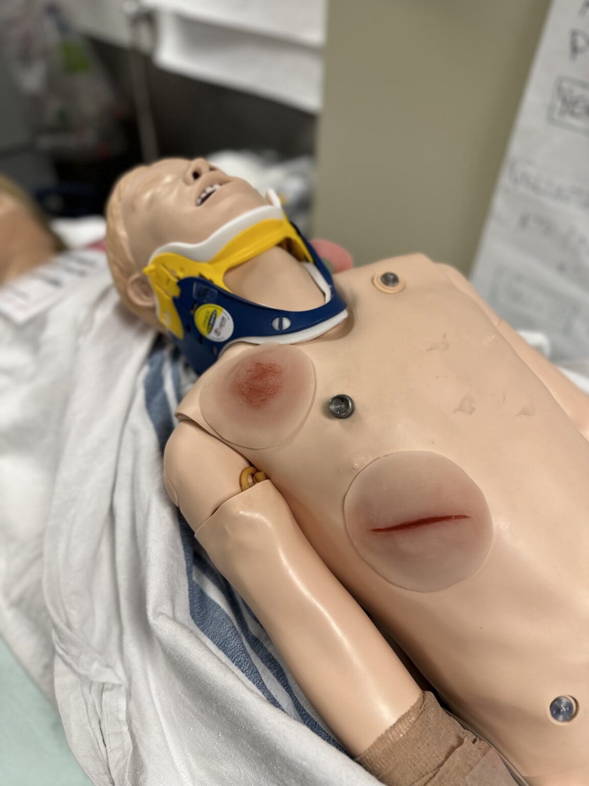 A Sticky Wound Kit has been purchased through your donations for enhancing education scenarios. These sticky wounds simulate varying stages of ulcers, abrasions, cuts, and necrotic tissue, and can be placed on simulation models such as Henrietta, pictured here, to add realism to training events. Improving realism can lead to more effective learning by enhancing participants ability to engage with, and stay immersed in the session. These wounds also help reduce cleanup and preparation time and add a fun factor to the experience—a psychological component that has been shown to improve learning. Better learnings from simulation directly impact patient care and outcomes. Thank you for supporting our efforts to enhance healthcare education and training.