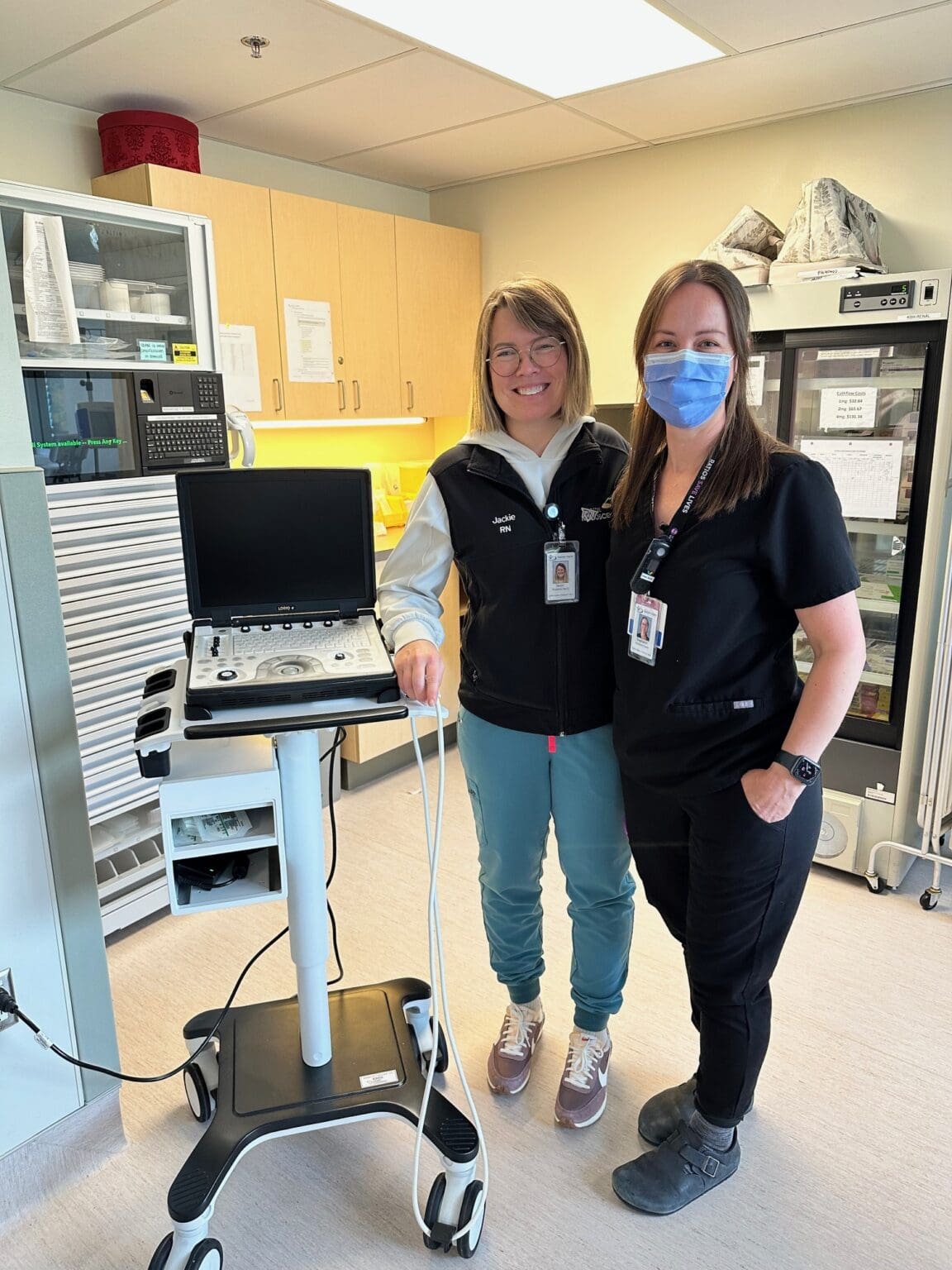 Jaclyn, Patient Care Coordinator, and Stephanie, RN, are here to showcase the new ultrasound machine in the Renal Unit, made possible by your generous donations!