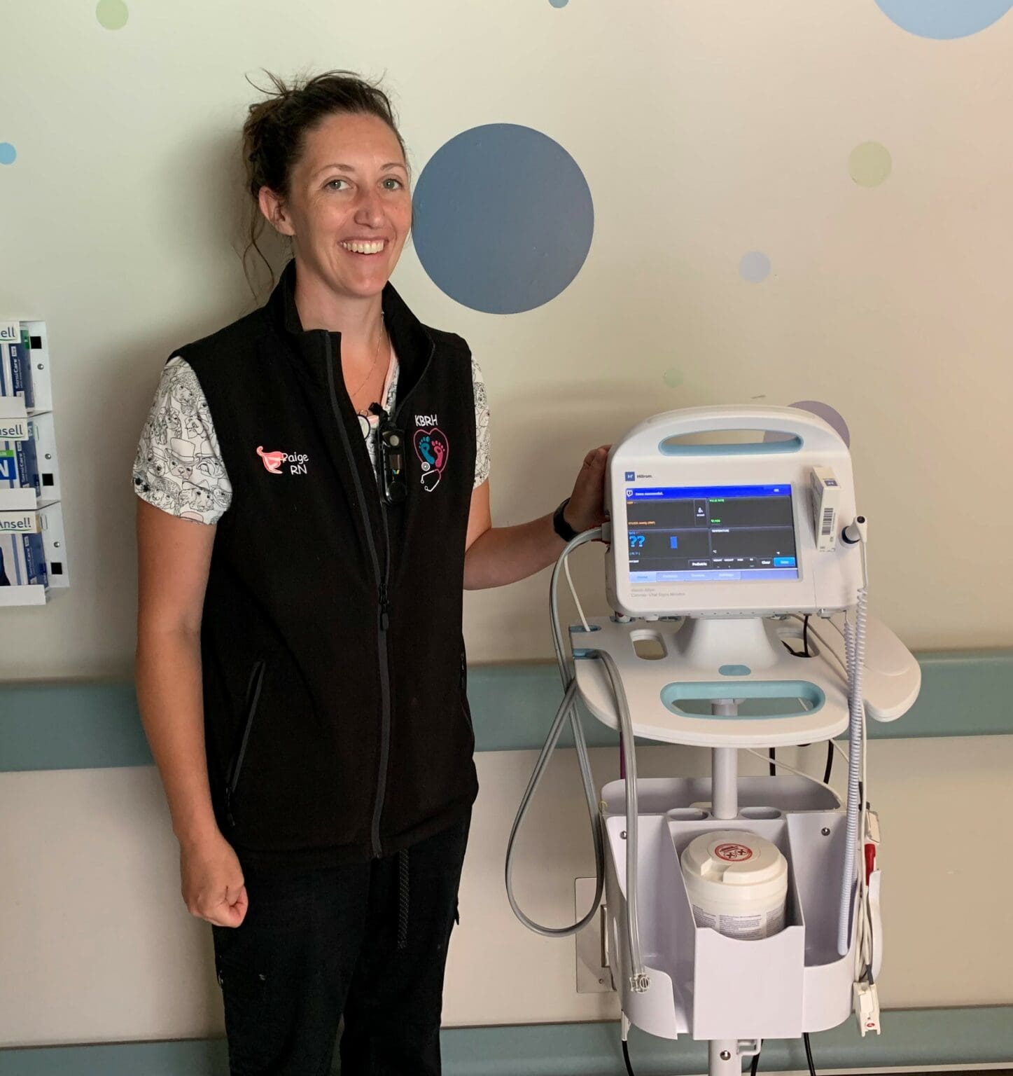 Carla, Patient Care Coordinator in the Ambulatory Care Unit, shows us one of four Vital Signs Monitors purchased through your generous donations. Vital Signs Monitors are used to monitor pre and post-operative patients. These monitors provide safe patient care and allow nurses to ensure the stability of patients. Wheels allow for mobility between rooms and patients.